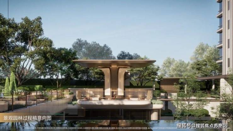 下沉式的庭院+架空层,带来立体式多重景观园林的体验,从效果图看和绿城潮鸣东方非常接近!